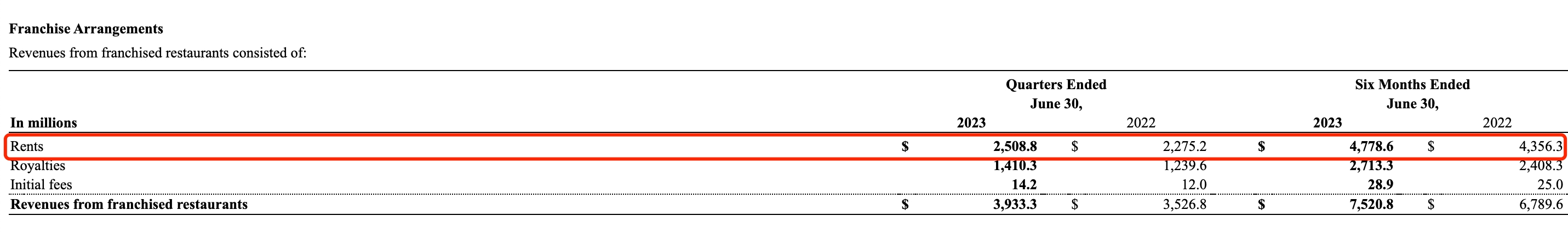 而且,即便是加盟模式的麦当劳,其营收主要来源仍是当房东,收取租金。