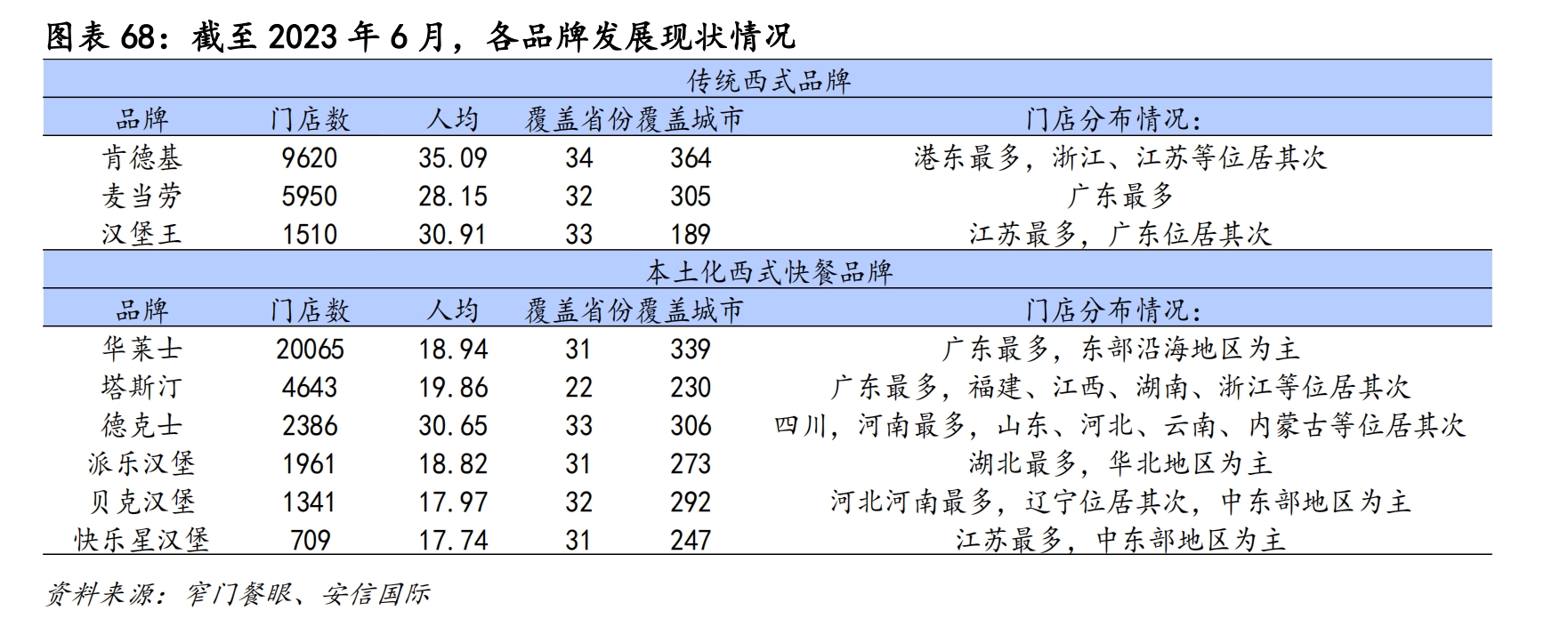 传统西式品牌VS本土西餐快餐品牌 图源:安信国际
