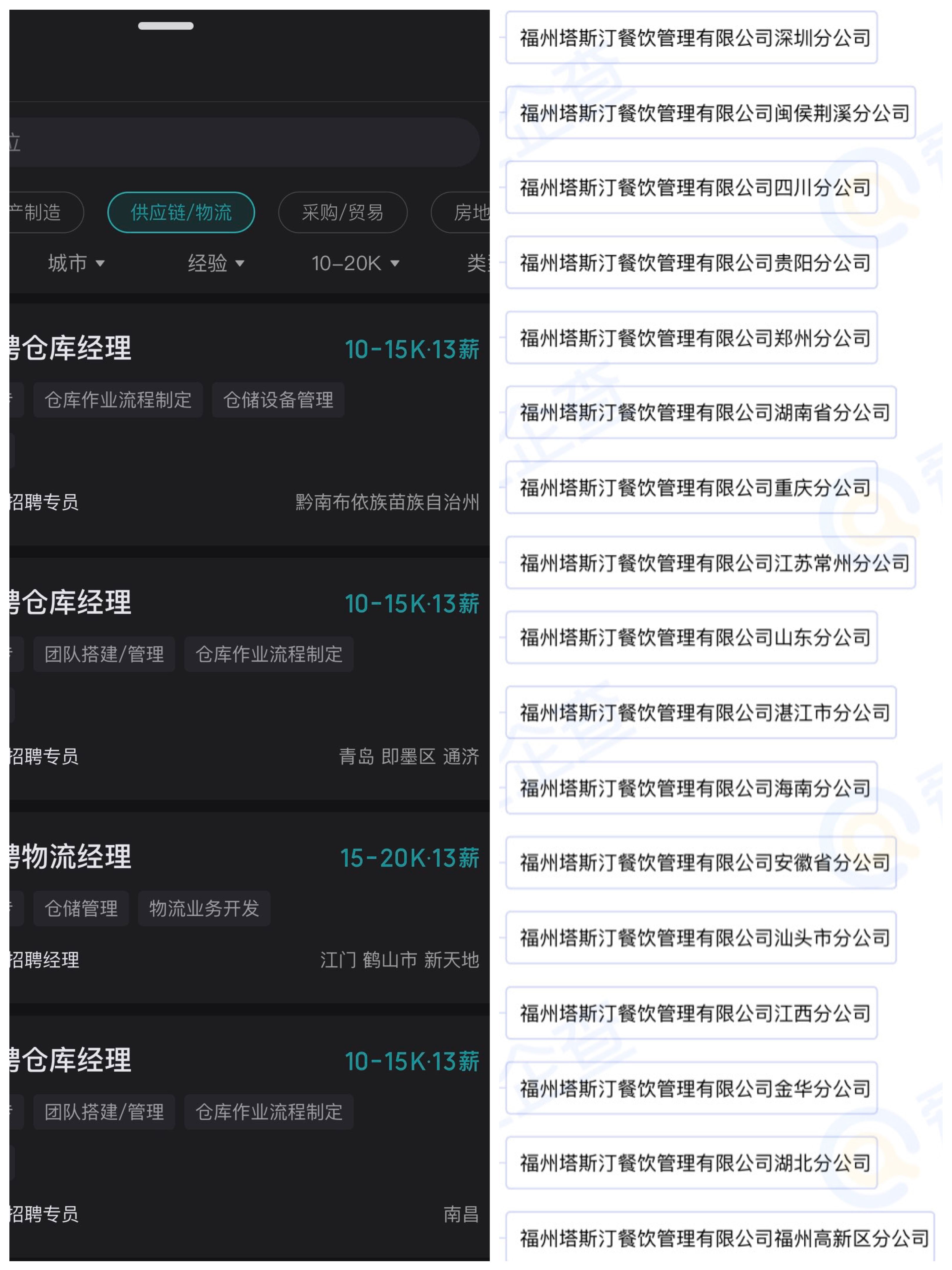 塔斯汀子仓库招聘&子公司 图源:作者制图