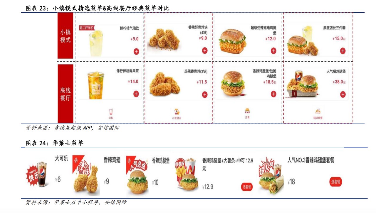 肯德基小镇店和华莱士菜单均价9-15元 图源:安信国际